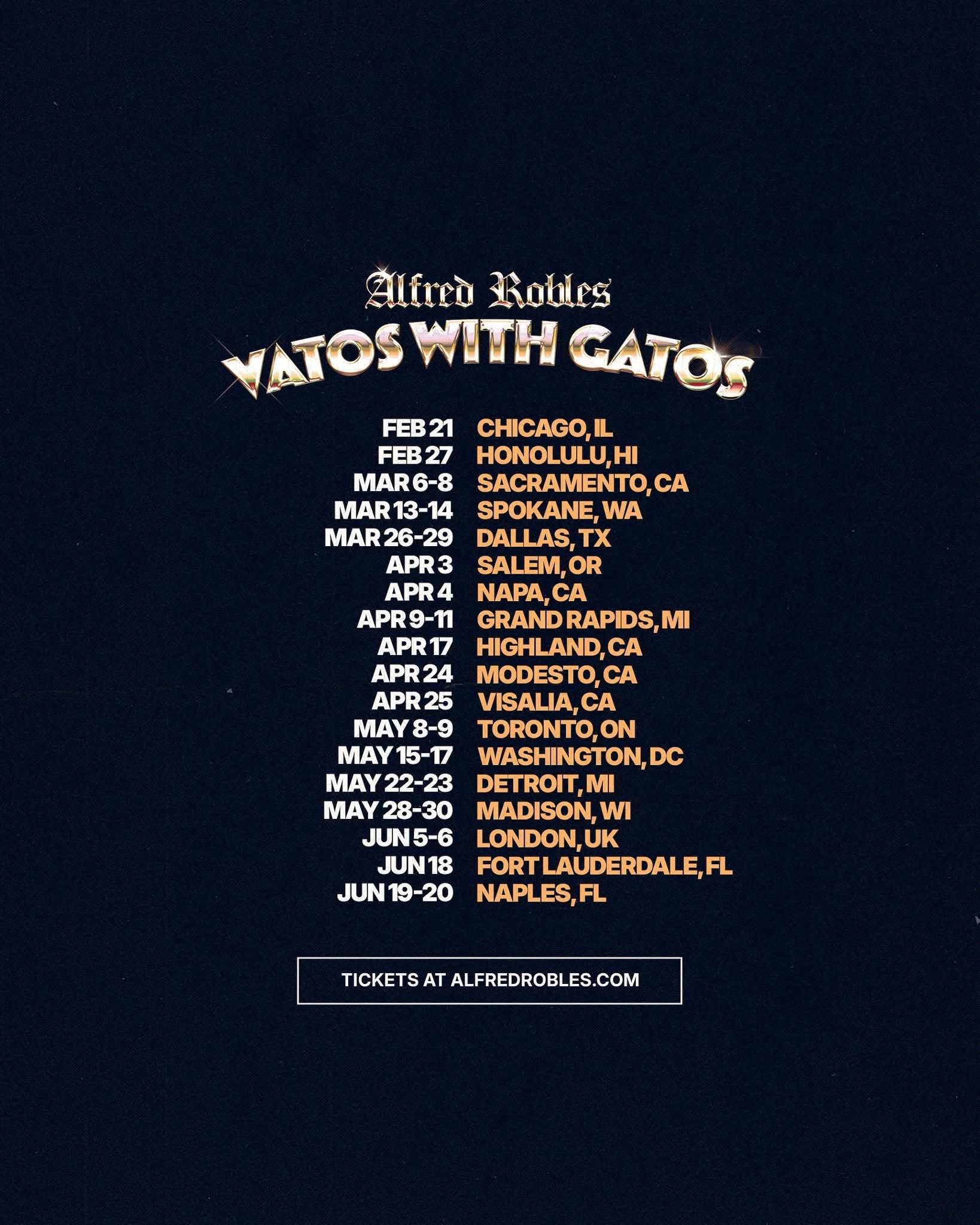 For updates, exclusive content, and tour announcements, follow Alfred Robles on social media and visit his official channels.