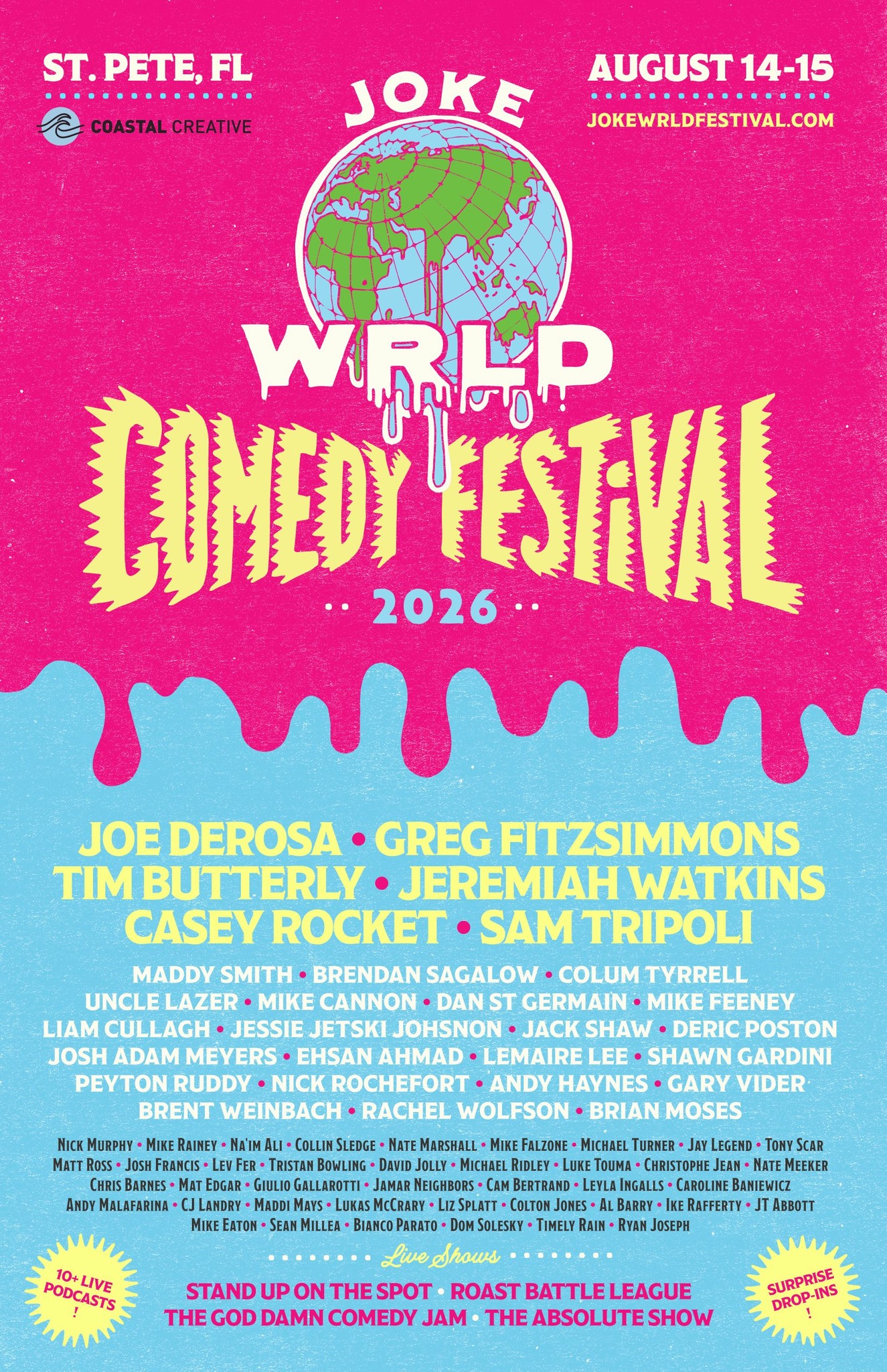 The comedy world is heading to the Sunshine State this summer as the inaugural Joke WRLD Comedy Festival makes its highly anticipated debut August 14–15 in St. Petersburg. Promising an unforgettable weekend packed with laughs, chaos, and a few surprises, the two-day event will showcase more than 60 comedians and over 10 live podcast recordings.