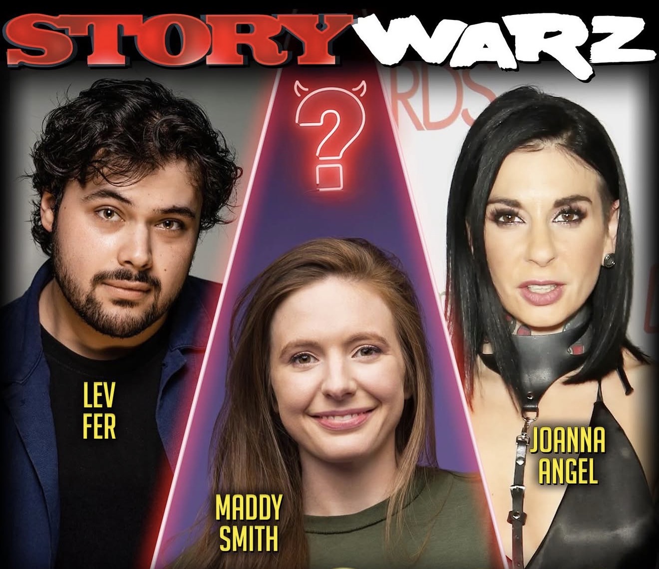 This week, comedians Maddy Smith, Lev Fer, & Joanna Angel go head-to-head with Big Jay Oakerson & Luis J. Gomez in an episode of Story Warz that’s all about SHOCK! Who froze like a deer in headlights when they saw an old woman fall and crack her head on concrete? Who tried to spit at a woman after she punched the hood of their car? And whose mother threw a knife at them while arguing in the kitchen?